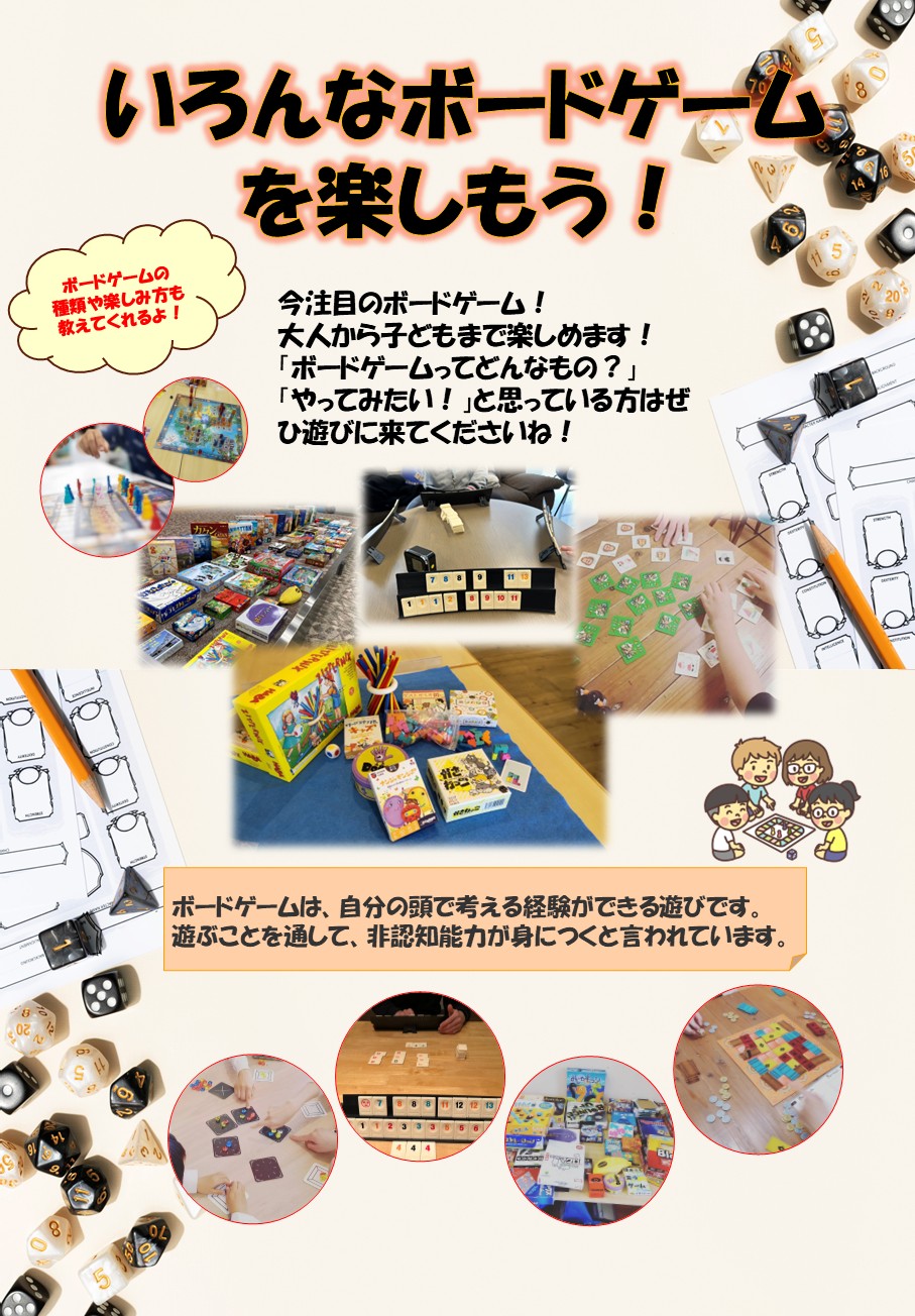 今回は、色々なボードゲームが新家にやってきます!子どもも大人もみんなで
